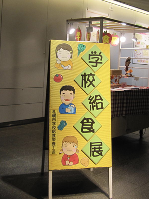 札幌駅前地下歩行空間北1条イベントスペースにおいて、「第46回学校給食展」が行われました。札幌市学校給食栄養士会主催、公財)札幌市学校給食会は今年も共催で参加しました。